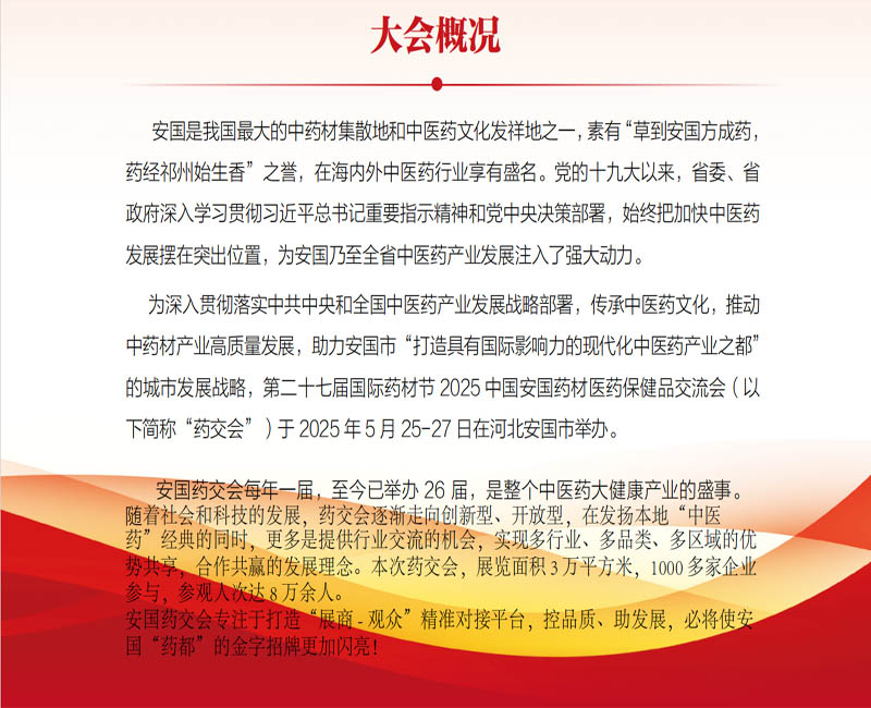 安国中药材展会、安国药交会、安国药材集市、2025安国药交会、2025安国药材节、第27届国际药材节、2025中国安国药材医药保健品交流会