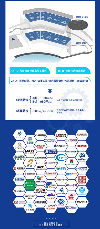 1、食品加工/包装设备:餐饮食材生产机械设备、预制菜处理设备、中央厨房全套及配套产品技术、智慧厨房设备、食品杀菌设备、包装机械、灌装设备,;肉类加工设备、屠宰设备、水产加工设备等;收银终端,送餐机器人、餐厨用具、餐厨器皿,新零售、智慧餐厅(自动售餐机)、信息化服务商等,包装设计、图形设计、商标设计、包装设备、各种复合材料、金属材料、纸质材料、玻璃材料、防伪材料及各种材料与制品等;