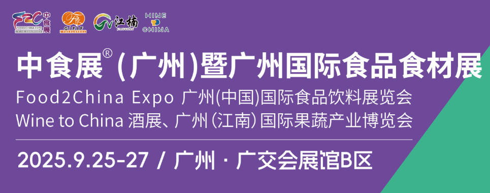 2025中食展(广州)暨广州国际食品食材展、Food2China Expo广州(中国)国际食品饮料展览会、Wine to China酒展、广州(江南)国际果蔬产业博览会,将于2025年9月25日至27日在广州广交会展馆举办。