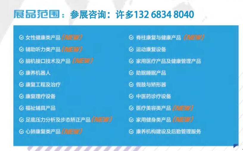 CRS中国国际康复及个人健康博览会、CECN中国国际养老福祉及护理用品博览会、Life Care中国国际家用医疗用品展览会作为亚太地区优选的专注康复养老护理保健及个人健康生活方式为一体的综合服务平台,致力在展会现场9号馆为观众带来全球化的智能康复养老机器人、脑机接口技术、福祉器具、智慧养老、家用医疗、睡眠健康、脊柱健康及康复、护理保健、医疗美容、中医养生、营养健康、居家照护、适老化改造、老年生活文娱产品集群等全产业链新技术、新产品及新应用,助力行业打通医养/康养全产业链布局。