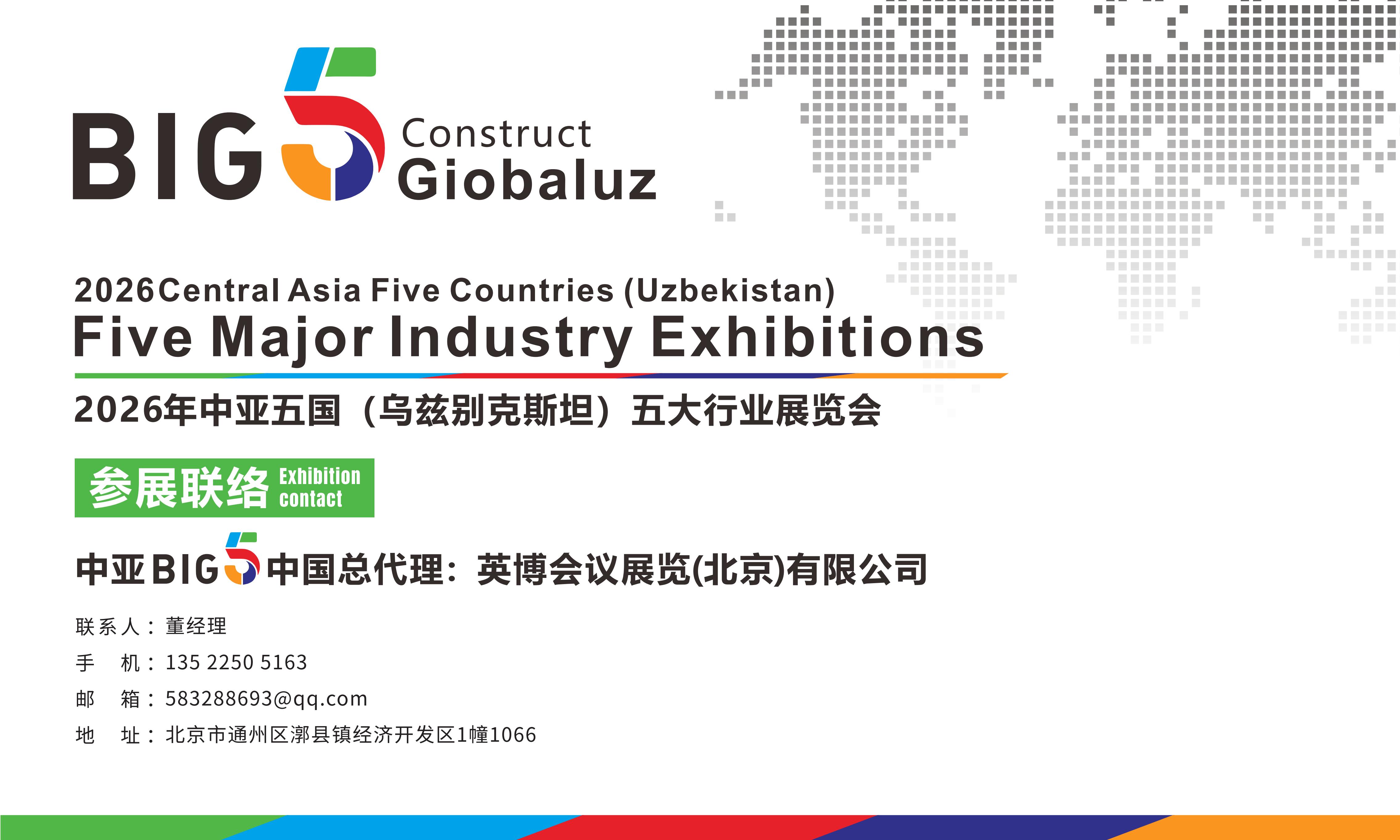 由乌兹别克斯坦建设部、交通部、地质和矿产资源部、经济部、能源部等五大核心部委,联合国际知名展会运营机构DMG集团重磅打造的中亚五大行业展会(BIG5),正式对外官宣,将于2026年8月26日至28日在塔什干国际会展中心举办。