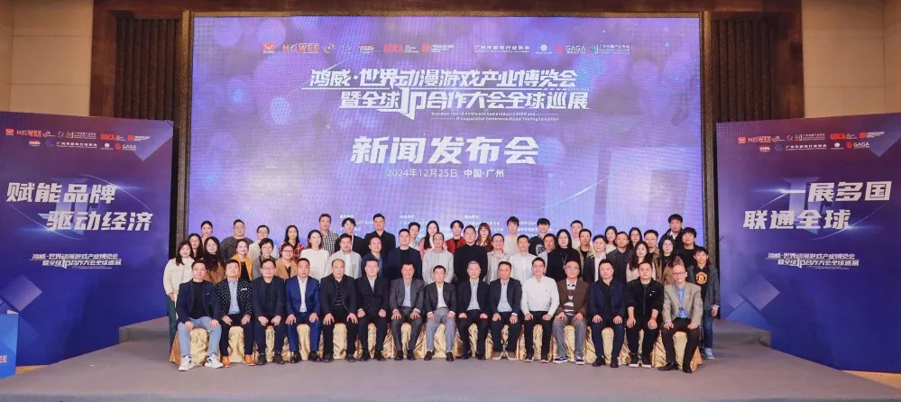2024年12月25日,2025鸿威·世界动漫游戏产业博览会暨全球IP合作大会全球巡展活动在广州启动。活动聚焦以动漫游戏产业为发展引擎,依托全球IP合作,通过IP赋能提升品牌与产品的文化价值及市场竞争力,助力制造业升级,促进产业提质创新。