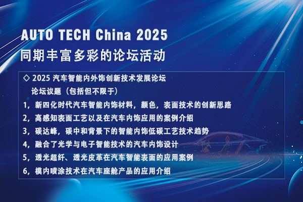 AUTO TECH China 2025 广州国际汽车内外饰技术展览会的成功召开,为汽车内外饰行业的发展注入了新的活力。它不仅为企业提供了展示实力、拓展业务的平台,也为行业从业者提供了学习交流、洞察未来的机会。在这个充满机遇与挑战的时代,汽车内外饰行业正站在新的发展起点上,通过不断创新与合作,推动汽车产业迈向更高水平。相信在行业各方的共同努力下,汽车内外饰将在美学、科技与环保的融合之路上不断前行,为消费者带来更加卓越的汽车产品与出行体验。让我们共同期待汽车内外饰行业更加辉煌的明天,期待下一次展会再次相聚,共探行业发展新机遇!11月20日-22日,广州保利世贸博览馆,期待您的莅临!更多精彩等待您现场解锁!展位预定火热进行中,欢迎有需求参展的企业,把握机会,展示您的优秀产品与技术!详情请登录:www.china-autotech.com 参展 / 参观联系人:汪女士177 2452 1438 wangcuiping@jswatson-expo.com