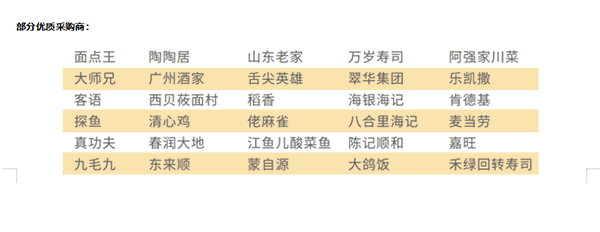 5、一次合作、永久服务:大会持续丰富的社群营销体系会为您不断地推送采购需求以及商务对接。不定期邀请连锁餐饮品牌采购、团餐机构等组织沙龙活动,有效推动企业产品推广,合作对接等活动安排。