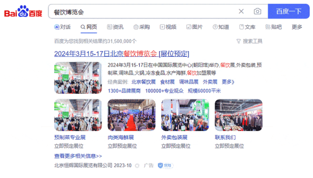 一直以来,北京餐博会坚持致力于为广大参展商、观众及合作伙伴提供高质量、高水准的服务和体验,通过以百度、抖音、头条宣传渠道为主,以公众号、行业媒体、邮件、短信群发,公交地铁广告投放、农贸及冻品市场广告投放、地推、邮寄门票等宣传渠道为辅的方式,对展会及展商进行推广宣传工作,还通过自有商贸对接群,为展商及观众提供及时、有效的采购交流等多元化服务。